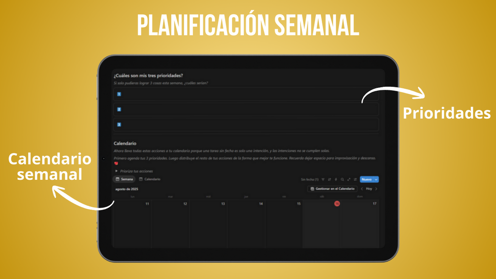 Esta plantilla de Notion está pensada para darte el espacio que necesitas para organizarte y fluir con tu semana, sin complicaciones.