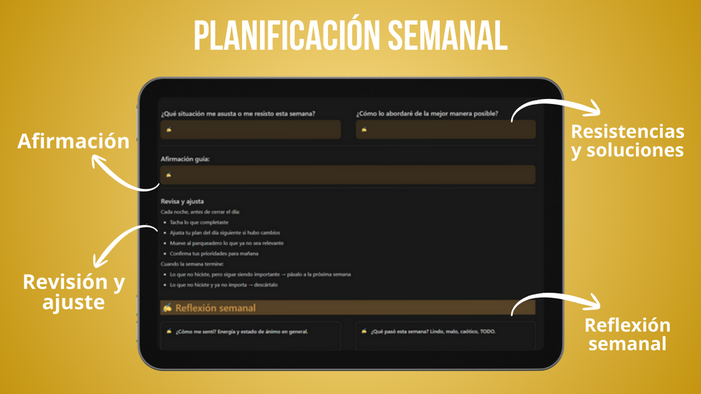 ✅ Una estructura que te acompaña para planificar y reflexionar cada semana.